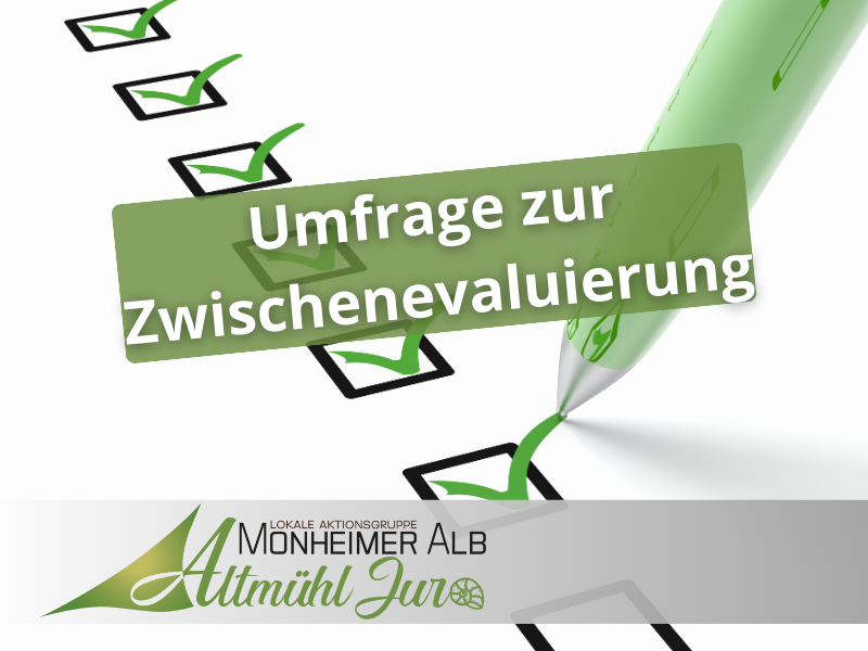 es ist wieder soweit: Die Zwischenevaluierung steht an. Wie in der Lokalen Entwicklungsstrategie festgelegt, muss 2025 per Fragebogen überprüft werden, ob die Ziele unserer LES umgesetzt werden oder ob etwas geändert werden muss. Mögliche Anpassungen können durch die Mitgliederversammlung beschlossen werden. Diese findet am Montag, 30. Juni 2025, in Pappenheim statt. Bitte merken Sie sich den Termin bereits jetzt vor, eine gesonderte Einladung folgt rechtzeitig.