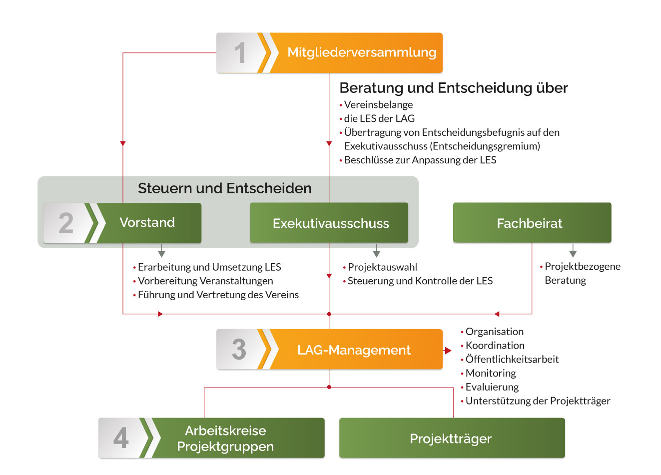 Der Exekutivausschuss besteht aus 26 Mitgliedern, darunter der Vorstand und weitere Vereinsmitglieder entsprechend mindestens der Anzahl der Mitgliedskommunen. Hiervon entsendet jede einen Wirtschafts- oder Sozialpartner mit Stellvertreter. Von den Bürgermeistern der 17 Kommunen gehören acht sowie der Vorsitzende dem Gremium an und werden von den restlichen acht vertreten. Es überwiegen somit die Interessen von Privatpersonen. Die Sitzungen des Entscheidungsgremiums finden nach Bedarf, mindestens jedoch zwei Mal jährlich statt.